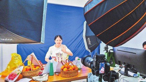 平樂郵政主播在電商直播間推介柿子系列產品。 □唐何溪 攝