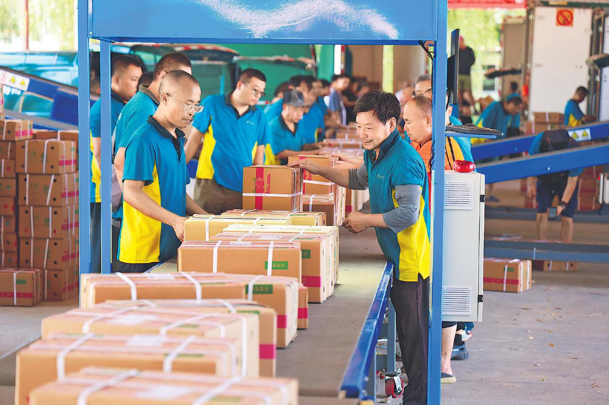 在大華山鎮攬收點,桃農李大姐的鮮桃剛剛褪去專用紙袋過秤稱重,面單信息便通過PDA實時錄入系統,隨即鮮桃被裝入印有“郵政農品”標志的定制快遞箱,開啟了郵寄旅程。“我們負責這片區域的10個村,郵件在站點完成前置分揀,按同城、外省分類,8點半前裝車直發本區處理中心,不再繞道市里中轉。”閆雷解釋道。這種“收寄—前置分揀—直達本區”的直封直發模式,是今年提速的關鍵。各區團隊每天6點前到崗,確保8點至8點半的“同城當日遞”首頻次郵件準時發出。