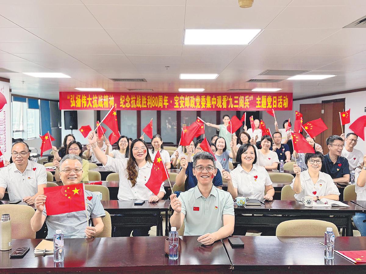 深圳市寶安區(qū)郵政分公司9月3日上午開展主題黨日活動(dòng),組織觀看紀(jì)念大會(huì)直播,引導(dǎo)黨員干部在回望歷史中堅(jiān)定理想信念,在緬懷先烈中凝聚奮進(jìn)力量。 □劉靜娜 攝