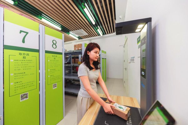 8月20日,在安徽省合肥市科大訊飛小鎮(zhèn),客戶在郵政無(wú)人驛站掃碼領(lǐng)取郵件。