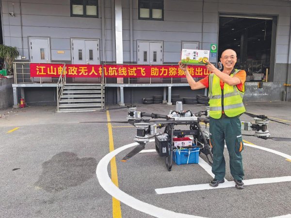 江山郵政不斷創新服務模式,8月27日下午,在塘源口鄉彬峰農業發展有限公司的獼猴桃種植基地啟動無人機運輸航線試飛,一架搭載10公斤獼猴桃的無人機從山間果園起飛,僅用9分鐘便順利完成了至江山共配中心的20公里直線跨越。從郵車速運到無人機直達,江山獼猴桃沿暖心產銷鏈路走進千萬家庭。江山郵政不僅為果實筑牢“保鮮銷路”,更以多元助農舉措讓農戶致富路越走越寬。