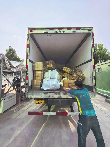 在郵件投遞和收寄環節,北京郵政嚴格執行工作規范。這是工作人員熟練地將包裹裝上郵車。