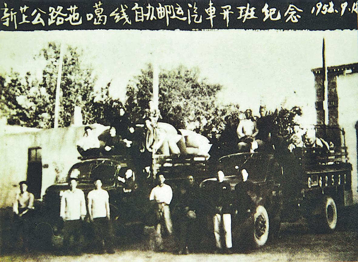 1958年,新藏汽車郵路郵運班車待發。