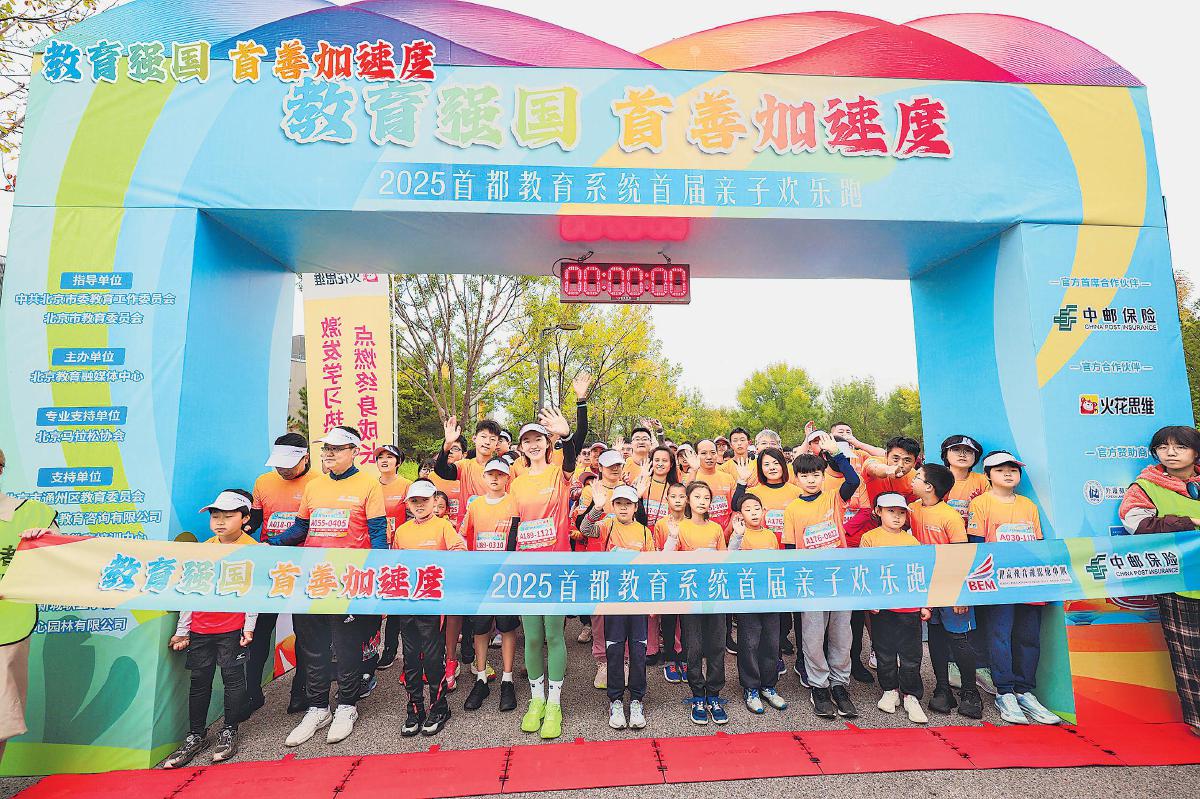 10月12日,“教育強國·首善加速度”首都教育系統首屆親子歡樂跑在北京市通州區城市綠心森林公園活力開跑。作為首席官方合作伙伴,中郵人壽保險股份有限公司全程守護,陪伴400組參賽家庭共享這場融合運動、健康與教育的活動。