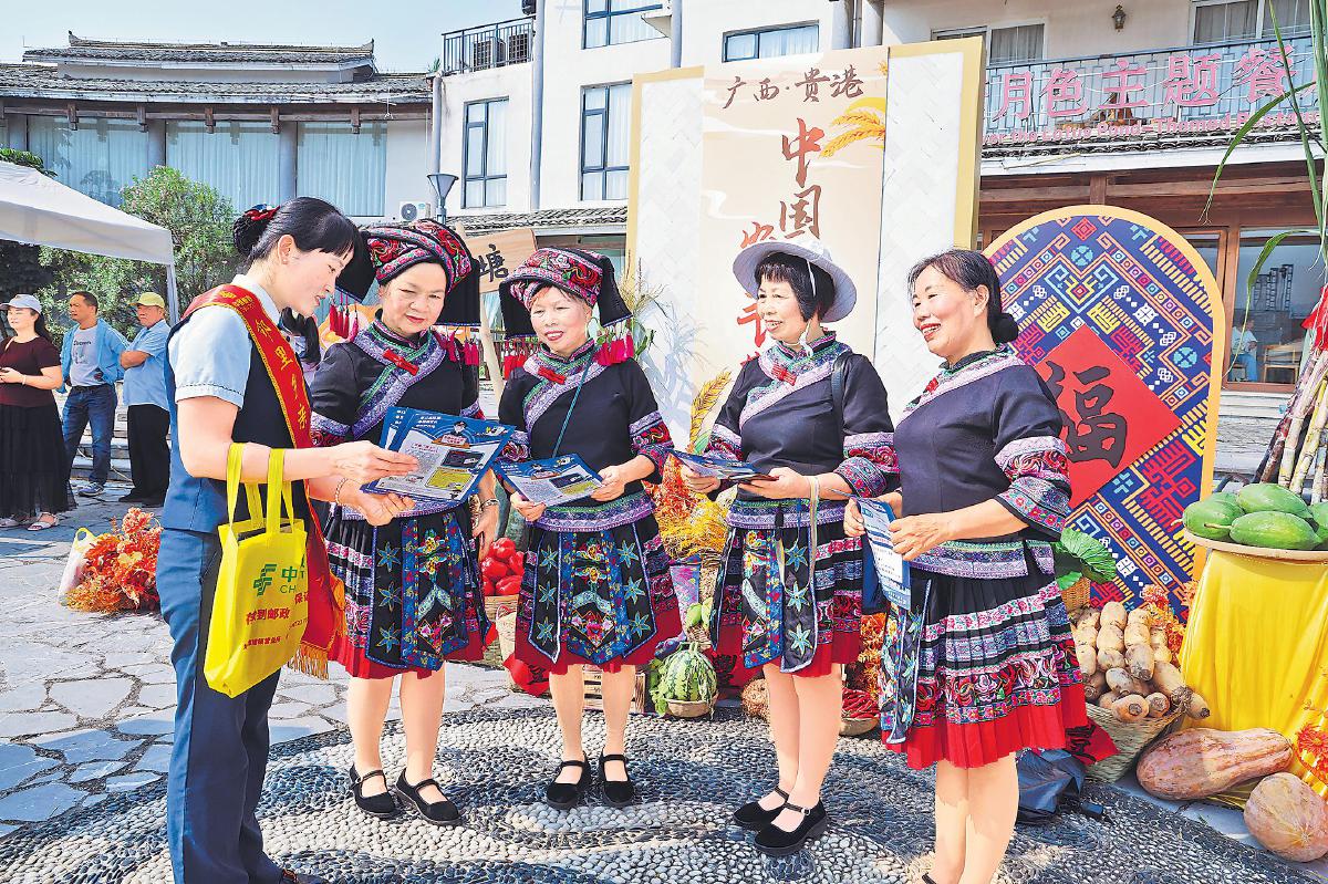 10月17日,廣西壯族自治區(qū)貴港市郵政分公司覃塘郵政支局組織工作人員,走進(jìn)貴港市慶祝2025年中國農(nóng)民豐收節(jié)活動現(xiàn)場,積極開展以“金融為民譜新篇·守護(hù)權(quán)益防風(fēng)險(xiǎn)”為主題的金融教育宣傳活動,現(xiàn)場向群眾講解金融知識,傳授有效識別和防范非法集資等技巧,讓大家遠(yuǎn)離高收益誘惑陷阱,受到當(dāng)?shù)厝罕姷暮迷u。