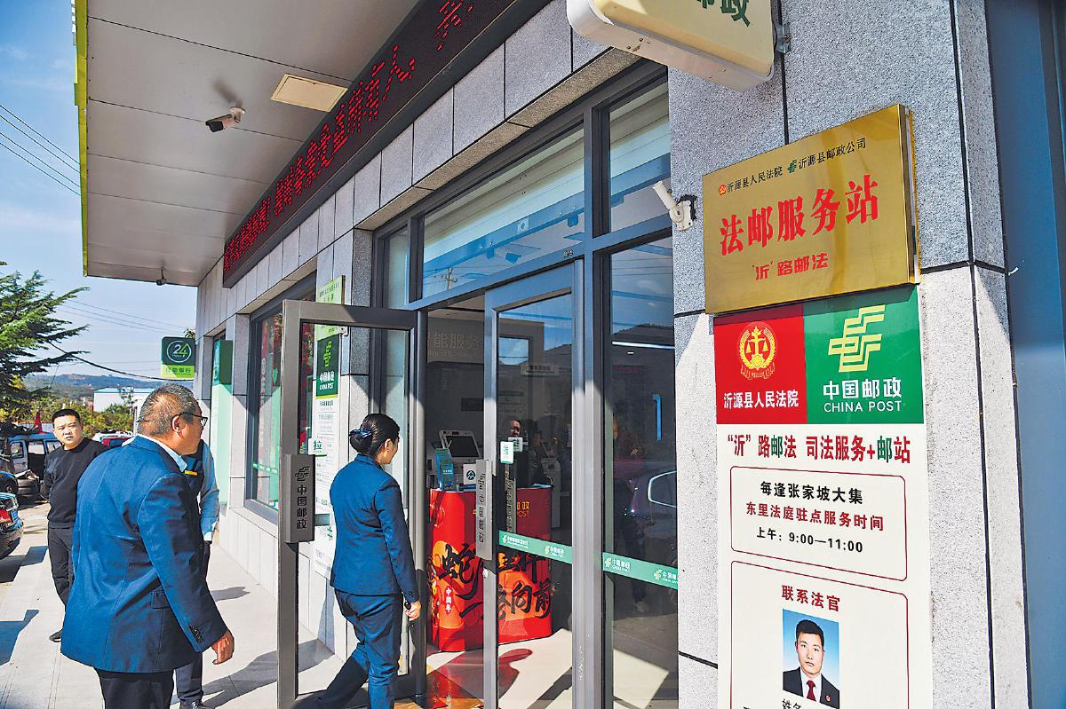 張家坡,山東省淄博市沂源縣東南30公里處的小鎮。鎮上的張家坡郵政支局里,藏著一項不尋常的服務——法郵服務站的司法服務。這是山東省高級人民法院與山東省郵政分公司攜手打造的“楓橋式”基層治理新樣板,也是司法服務“貼地而行”的生動實踐。群眾在“家門口”的郵局就能進行立案、咨詢、調解,甚至參與庭審;法律不再遙不可及,而是“一路有法、‘沂’路‘郵法’”。
